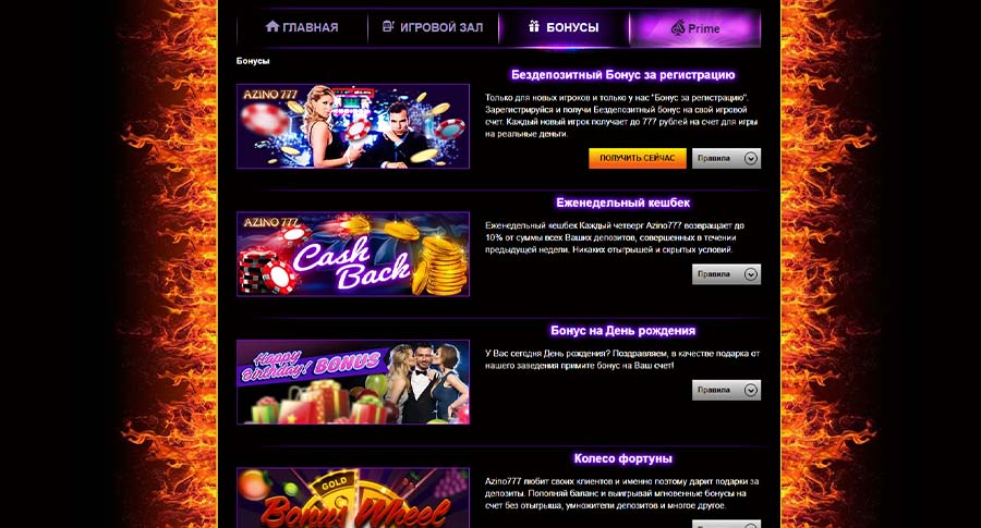 Азино777 часто предлагает привлекательные бонусы новым игрокам, включая бездепозитный бонус 777 рублей, кэшбэк и бонус на день рождения.